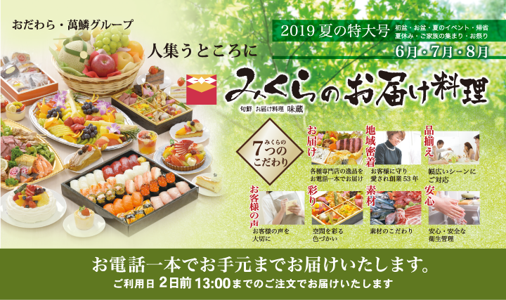 夏限定のお弁当、オードブル、スウィーツに加え、お盆の限定料理と大満足セットを掲載しております。